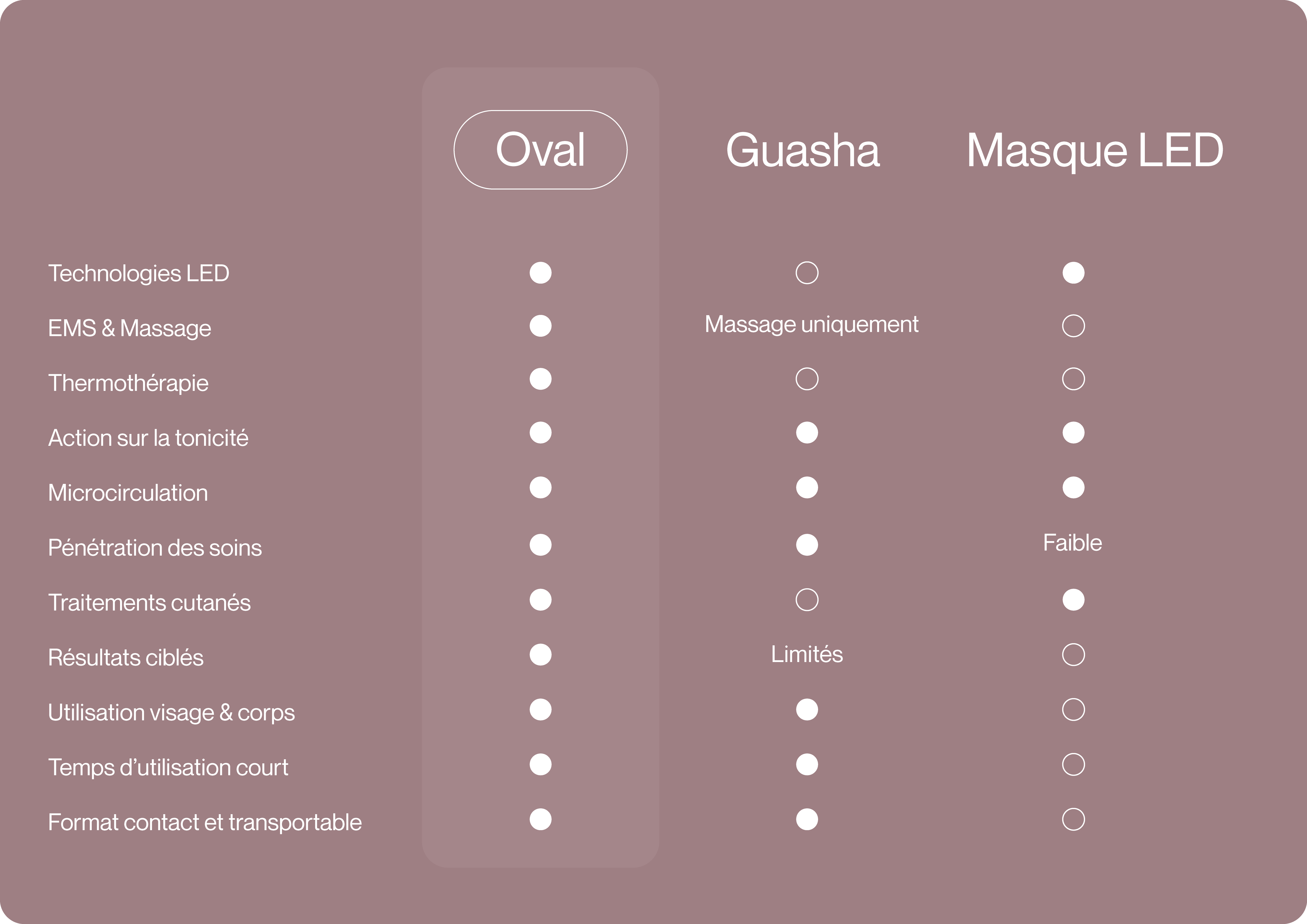 L’appareil OVAL est réglé à une température de 42°C car c’est une zone de confort thermique où la peau est suffisamment chauffée pour réagir, sans être agressée.